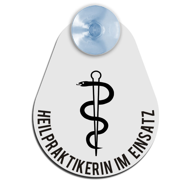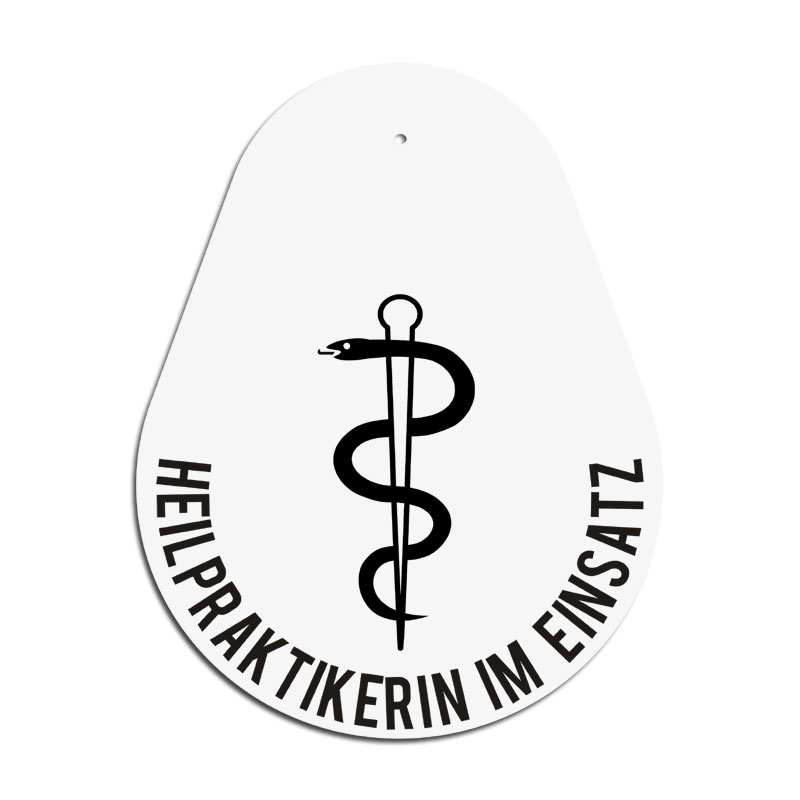 Startseite » Schilder » Fertige Schilder » KFZ Innenschilder » Tropfenform » Heilpraktikerin im Einsatz - Hinweisschild für Fahrzeuge in Tropfenform
