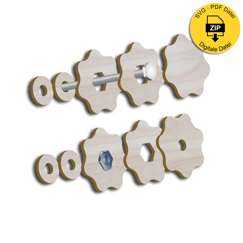 Startseite » Downloads » Laservorlagen » Sterngriffmutter/Schraube für M6, M8 und M10 - Laservorlage